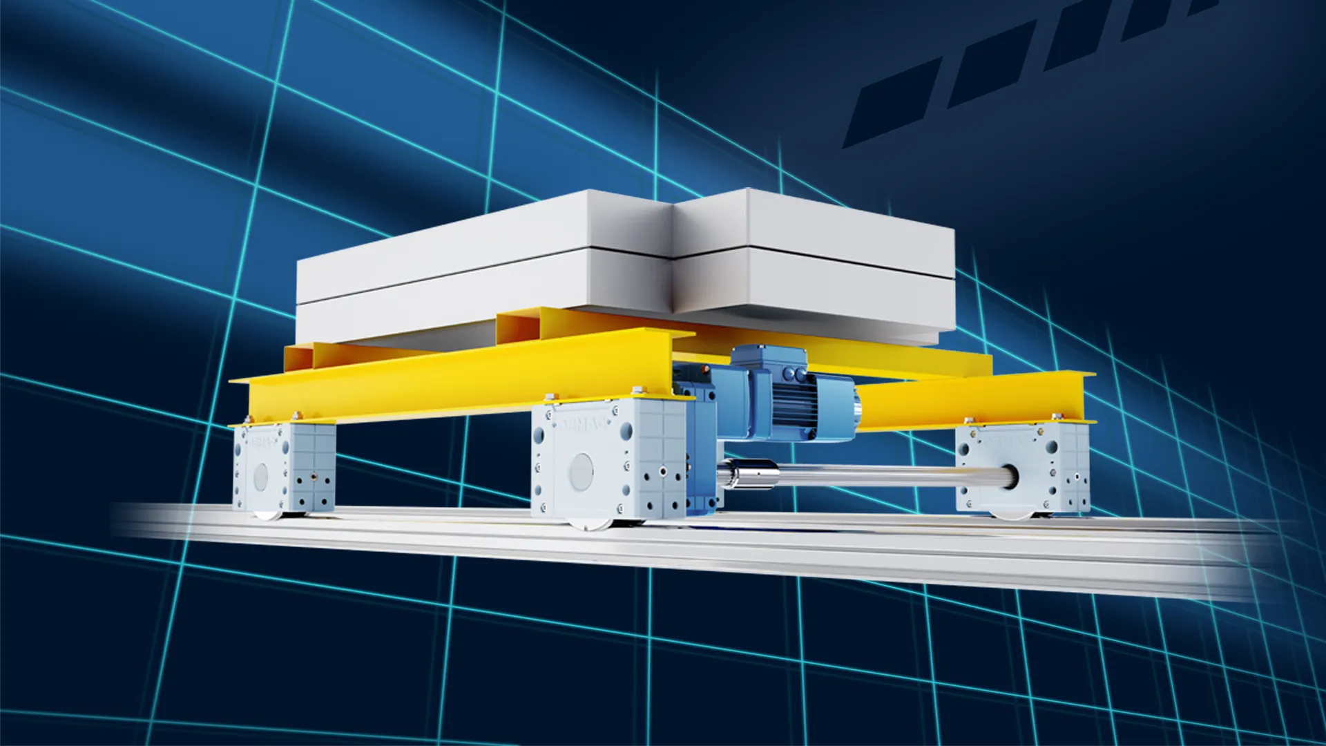 With our components for battery-powered transfer carriages, we can offer you a self-sufficient solution in which the charging and power unit is already integrated on board. All Demag drive components can be used with their full performance features for battery-powered systems.